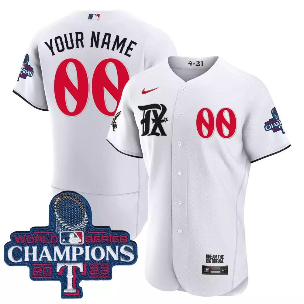 Texas Rangers 2023 World Series Champions Jersey V2 | White Gold Youth Cool Base | Custom Stitched Fan Gear | For Youth;Texas Rangers 2023 World Series Champions Jersey V4 | White Gold Cool Base | Custom Stitched Fan Gear | For Women;Texas Rangers 2023 World Series Champions Jersey V4 | White Gold Flex Base | Custom Stitched Fan Gear | For Women;Texas Rangers 2023 World Series Champions Light Blue Custom Stitched Jersey | Name Patch | Women’s Style | For Men, Women & You;Texas Rangers 2023 World Series Champions Light Blue Custom Stitched Vapor Edition Jersey | Fan Gear | For Men, Women & Youth