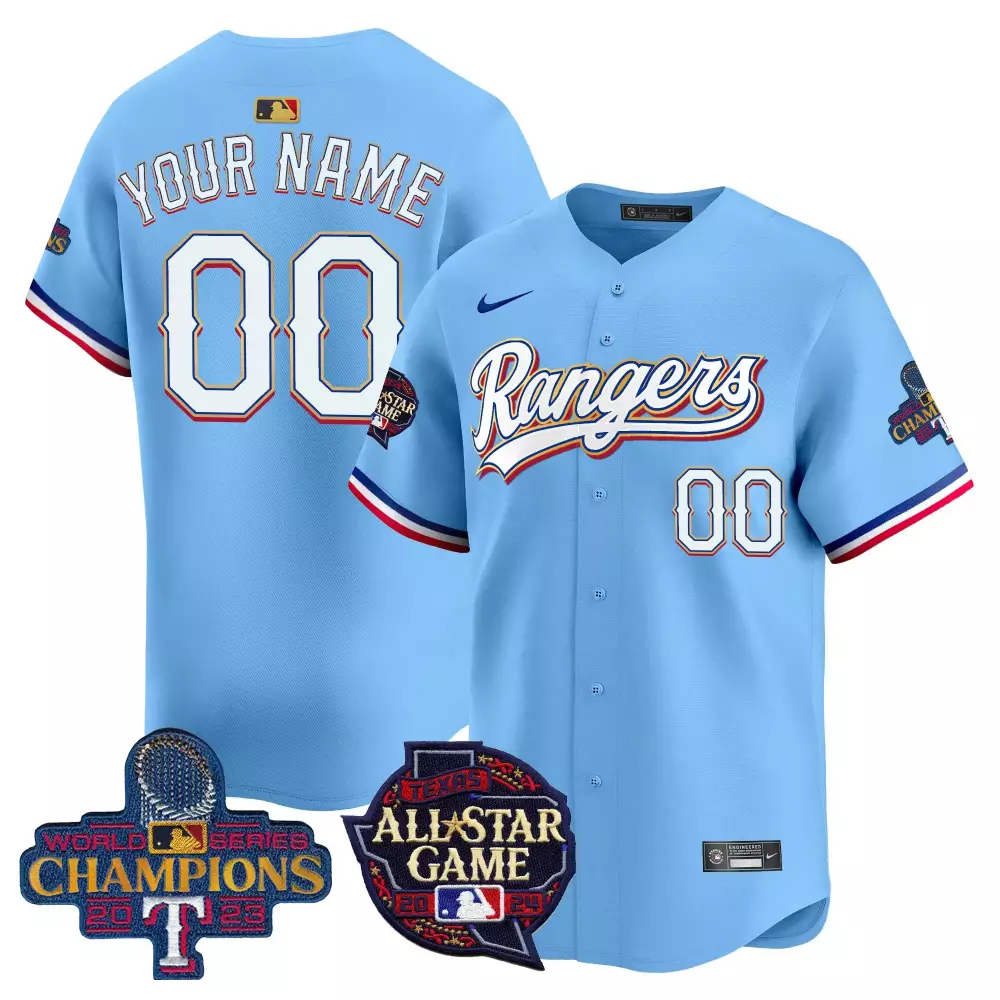 Texas Rangers 2023 Your Name Pink All Stitched Vapor Jersey | World Series Champions Edition | Fan Gear for Men, Women & Youth;Texas Rangers 2023 Your Name Red All Stitched Vapor Jersey | World Series Patch Edition | Fan Gear for Men, Women & Youth;Texas Rangers 2023 Youth Custom Jersey | Flex Navy with Gold Trim | Stitched Fan Gear for Men, Women & Youth;Texas Rangers 2024 All Star Game Custom Jersey | Blue Vapor Premier | Limited Edition | Fan Gear for Men, Women & Youth;Texas Rangers 2024 All Star Game Patch Custom Jersey | White Stitched Vapor Premier Limited | Fan Gear | For Men, Women & Youth
