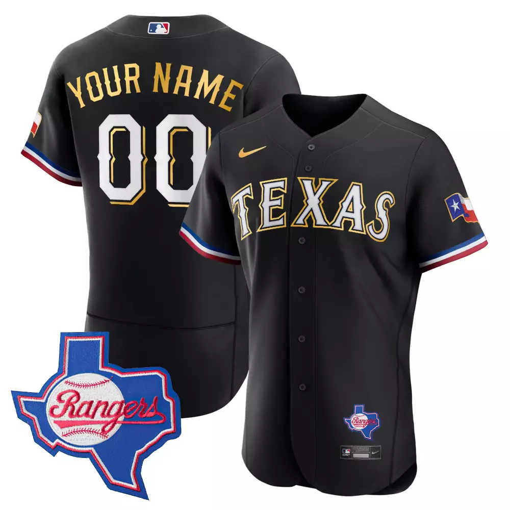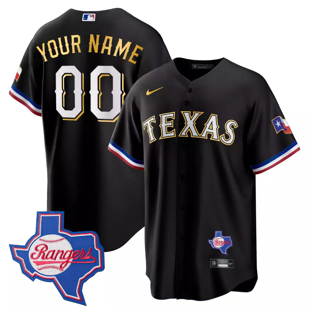 Texas Rangers Black Men’s Arlington Champions Vapor Premier Limited Jersey | All Stitched | Fan Gear for Men & Youth;Texas Rangers Black Men’s Gold Trim Cool Base Jersey Texas Patch | All Stitched | Fan Gear for Men & Youth;Texas Rangers Black Men’s Gold Trim Custom Jersey | Texas Patch | For Men, Women & You;Texas Rangers Black Men’s Gold Trim Flex Base Custom Jersey | Texas Patch | For Men, Women & You;Texas Rangers Black Men’s Gold Trim Flex Base Jersey Texas Patch | All Stitched | Fan Gear for Men & Youth
