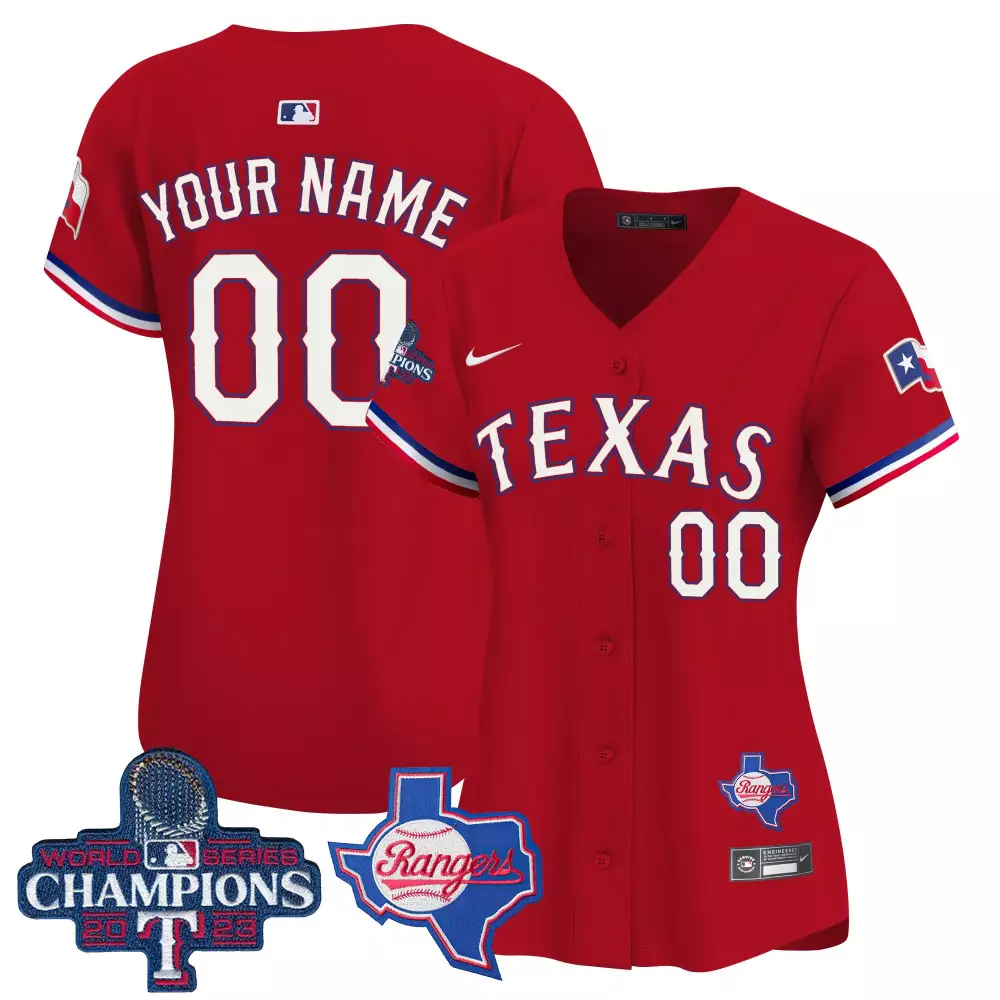 Texas Rangers Women’s 2023 World Series Champions Stitched Vapor Jersey | Custom Name 1 | Fan Gear for Men, Women & Youth;Texas Rangers Women’s 2023 World Series Champions Stitched Vapor Jersey | Red Design | Fan Gear for Men, Women & Youth;Texas Rangers Women’s 2023 World Series Champions Stitched Vapor Jersey | White & Gold | Fan Gear for Men, Women & Youth;Texas Rangers Women’s 2023 World Series Champions Stitched Vapor Jersey | White & Gold Edition | Fan Gear for Men, Women & Youth;Texas Rangers Women’s 2023 World Series Champions Stitched Vapor Jersey | White Design | Fan Gear for Men, Women & Youth