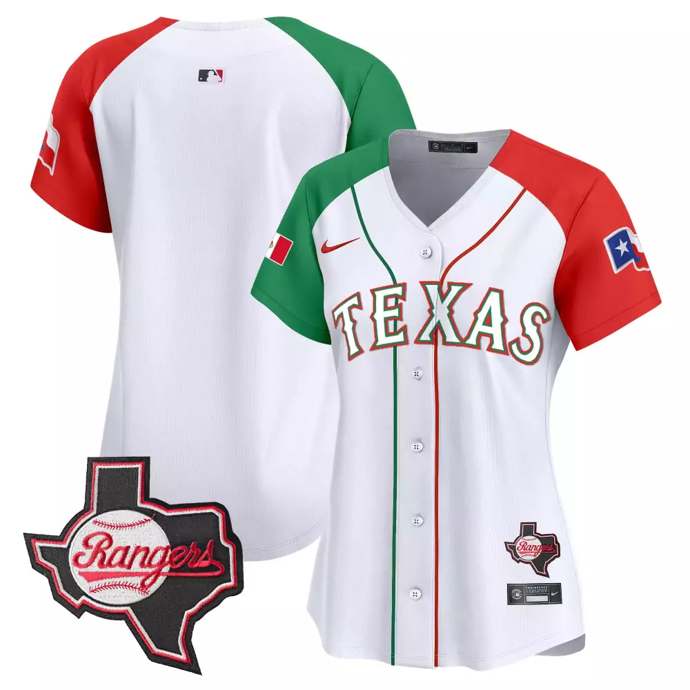 Texas Rangers Women’s White Mexico Flag Jersey 2023 | All Stitched Name Patch | For Men, Women & Youth;Texas Rangers Women’s White Red Green Custom Stitched Jersey 2023 | Name Patch | For Men, Women & Youth;Texas Rangers Women’s White Red Green Stitched Jersey 2023 | Name Patch | For Men, Women & Youth;Texas Rangers Women’s White Stitched Jersey 2023 | Custom Name Patch | For Men, Women & Youth;Texas Rangers Women’s White Stitched Vapor Jersey | Stylish Fan Gear | For Men, Women & Youth