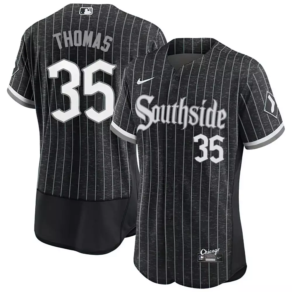 Thomas 35 Chicago White Sox 2023 Stitched Vapor Jersey | White with Born in Black Patch | For Men, Women & Youth;Thomas 35 Chicago White Sox 2023 Stitched Vapor Jersey | White, Red & Blue Fan Gear for Men, Women & Youth;Thomas 35 Chicago White Sox 2023 Women’s Stitched Vapor Jersey | Black Edition | Fan Gear for Game Day | For Women;Thomas 35 Chicago White Sox 2023 Women’s Stitched Vapor Jersey | Black Fan Gear for Women & Youth;Thomas 35 Chicago White Sox 2023 Women’s Stitched Vapor Jersey | Black Pinstripe Design | Fan Gear for Game Day | For Women