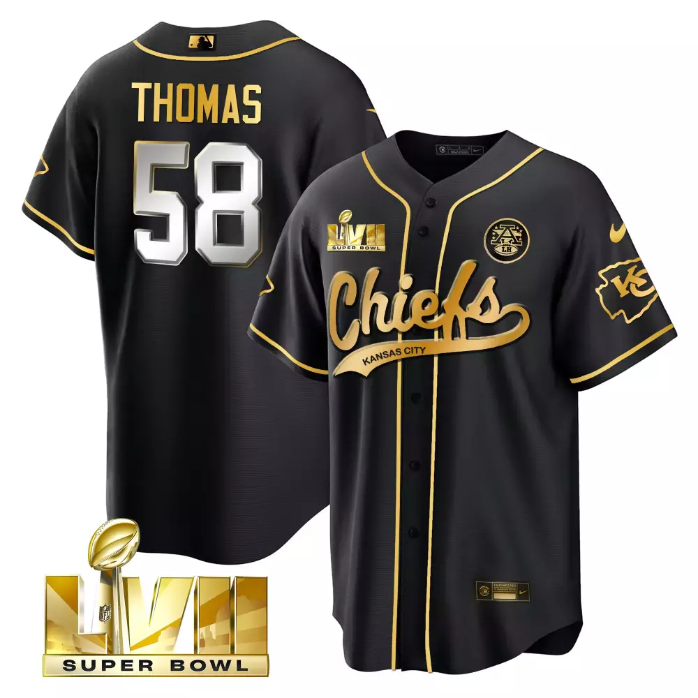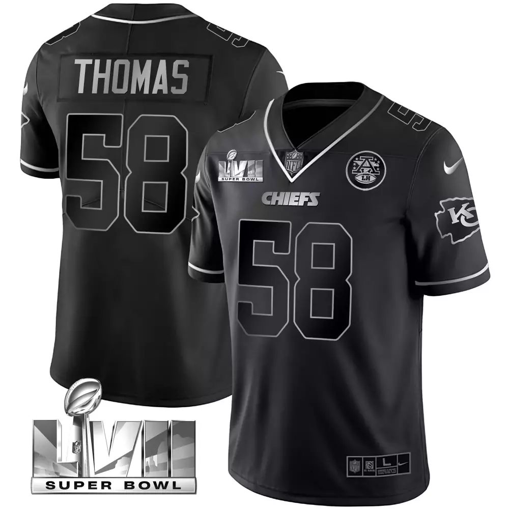 Thomas 58 Kansas City Chiefs 2023 Super Bowl Jersey | Black Stitched Vapor | Limited Edition Fan Gear | For Men, Women & Youth