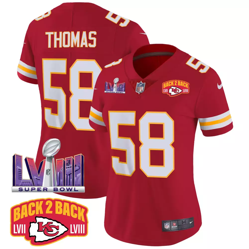 Thomas 58 Kansas City Chiefs 2023 Women’s Stitched Vapor Jersey | Back 2 Back Edition | Fan Gear for Women & Youth
