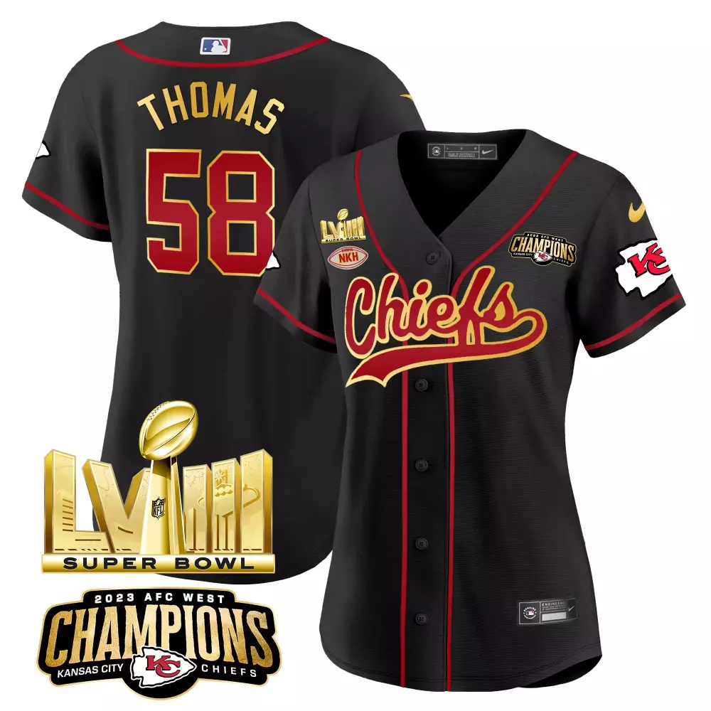 Thomas 58 Kansas City Chiefs 2023 Women’s Stitched Vapor Jersey | Black Champions Edition | Fan Gear for Women & Youth