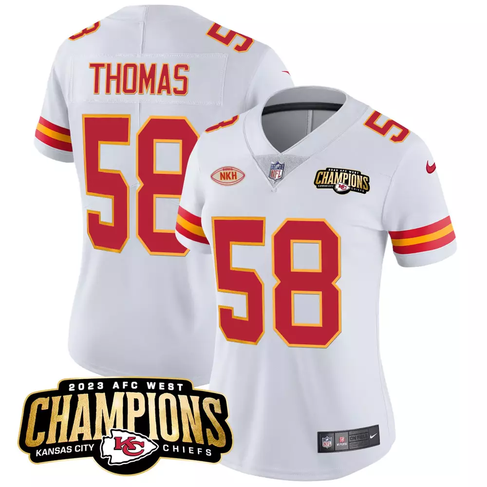Thomas 58 Kansas City Chiefs 2023 Women’s Stitched Vapor Jersey | Black Super Bowl Edition | Replica Fan Gear | For Men, Women & Youth;Thomas 58 Kansas City Chiefs 2023 Women’s Stitched Vapor Jersey | Black Super Bowl LVII Edition | Fan Gear for Women & Youth;Thomas 58 Kansas City Chiefs 2023 Women’s Stitched Vapor Jersey | Blue Super Bowl Edition | Limited Edition Fan Gear | For Men, Women & Youth;Thomas 58 Kansas City Chiefs 2023 Women’s Stitched Vapor Jersey | Champions Edition White | Fan Gear for Women & Youth;Thomas 58 Kansas City Chiefs 2023 Women’s Stitched Vapor Jersey | Champions Edition White | Fan Gear for Women & Youth