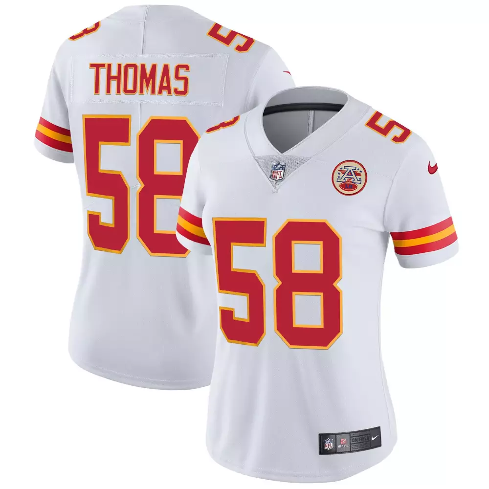 Thomas 58 Kansas City Chiefs 2023 Women’s Stitched Vapor Jersey | White | Limited Edition Fan Gear | For Men, Women & Youth
