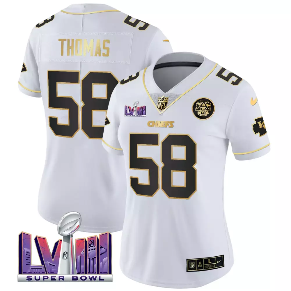 Thomas 58 Kansas City Chiefs White Stitched Jersey with Name Patch | Super Bowl LVIII 2023 Women’s Style | For Women, Men & Youth;Thomas 58 Kansas City Chiefs White Stitched Vapor Jersey | 2023 Men’s Style | For Men, Women & Youth;Thomas 58 Kansas City Chiefs White Stitched Vapor Jersey | Back 2 Back Super Bowl LVIII | For Men, Women & Youth;Thomas 58 Kansas City Chiefs White Stitched Vapor Jersey | Super Bowl LVII Women’s Edition | For Women, Men & Youth;Thomas 58 Kansas City Chiefs White Stitched Vapor Jersey | Super Bowl LVIII Back 2 Back | For Men, Women & Youth