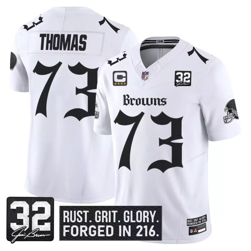 Thomas 73 Cleveland Browns 2023 Home Vapor Jersey | Cream Patch Fan Gear for Men, Women & Youth;Thomas 73 Cleveland Browns 2023 Limited Edition Stitched Jersey | Black with Memorial Patch for Men, Women & Youth;Thomas 73 Cleveland Browns 2023 Limited Edition Stitched Jersey | Black with Memorial Patch for Men, Women & Youth;Thomas 73 Cleveland Browns 2023 Limited Edition Stitched Jersey | White with 2023 Name Patch for Men, Women & Youth;Thomas 73 Cleveland Browns 2023 Limited Edition Stitched Jersey | White with Name Patch for Men, Women & Youth