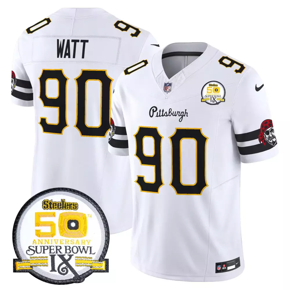 TJ Watt Pittsburgh Steelers 2024 Vapor Limited Jersey | Gold Alternate | All Stitched | For Men, Women & Youth;TJ Watt Pittsburgh Steelers 2024 Vapor Limited Jersey | White | All Stitched | For Men, Women & Youth;TJ Watt Pittsburgh Steelers Black and Gold Throwback Jersey | All Stitched | 80 Seasons Edition | For Men, Women & Youth;TJ Watt Pittsburgh Steelers Salute to Service 2022 Limited Olive Jersey | All Stitched | For Men, Women & Youth;TJ Watt Pittsburgh Steelers Throwback Bumblebee Jersey | All Stitched | For Men, Women & Youth