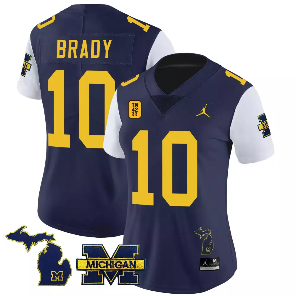 Tom Brady Michigan Wolverines TM42 Patch Limited Jersey | White Stitched Vapor Style for Youth | For Youth;Tom Brady Michigan Wolverines TM42 Patch Limited Jersey | White Stitched Vapor Style for Youth | For Youth;Tom Brady Michigan Wolverines TM42 Patch Limited Jersey for Women | White Stitched Vapor Style | For Women;Tom Brady Michigan Wolverines TM42 Patch Limited Jersey for Women | White Stitched Vapor Style | For Women;Tom Brady Michigan Wolverines TM42 Patch Navy Alternate Limited Jersey | Stitched Vapor Style | Fan Gear for Game Day | For Men, Women & Youth