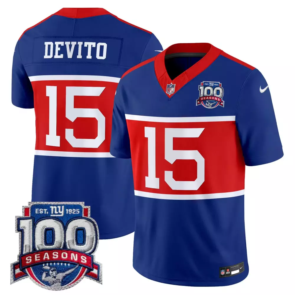 Tommy Devito New York Giants 100th Season Commemorative Jersey | Black Gold Vapor | Limited Edition Fan Gear | For Men, Women & Youth;Tommy Devito New York Giants 100th Season Commemorative Jersey | White Gold Vapor | Limited Edition Fan Gear | For Men, Women & Youth;Tommy Devito New York Giants 100th Season Commemorative Vapor Jersey | Royal | Stitched | Limited Edition Fan Gear | For Men, Women & Youth;Tommy Devito New York Giants 100th Season State Patch Vapor Limited Jersey | Royal | Stitched | Fan Gear | For Women;Tommy Devito New York Giants 100th Season State Patch Vapor Limited Jersey | White | Stitched | Fan Gear | For Men, Women & Youth