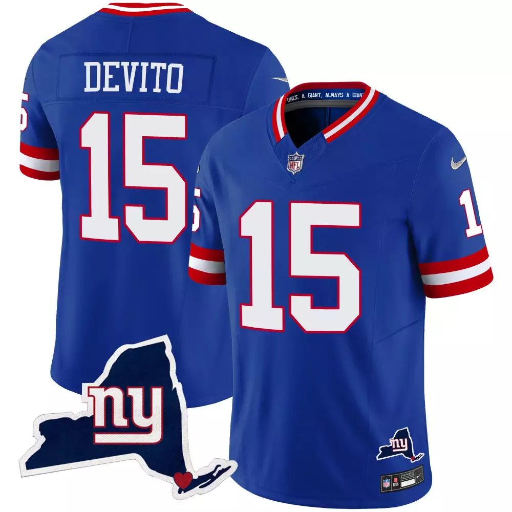 Tommy Devito New York Giants State Logo Patch Limited Jersey | Royal | Stitched | Fan Gear | For Men, Women & Youth