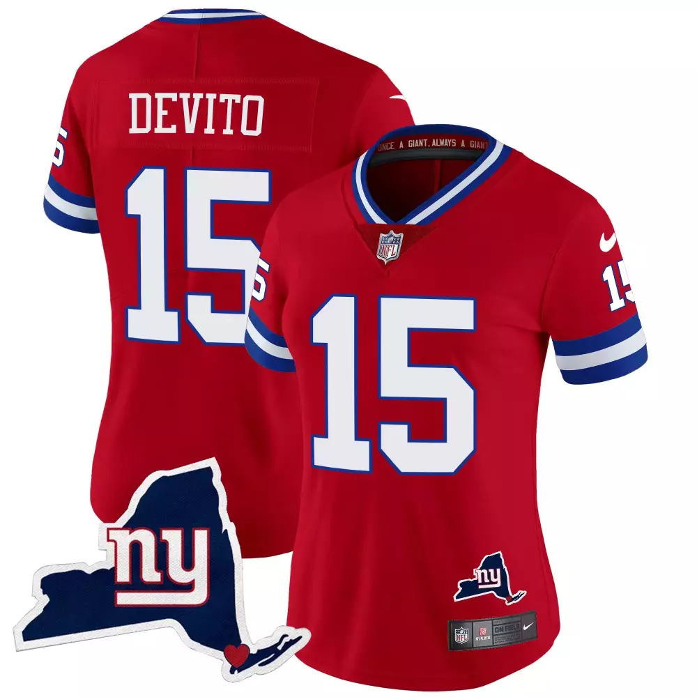 Tommy Devito Red Men’s New York Giants State Map Patch Limited Jersey V2 | All Stitched Fan Gear | For Men, Women & Youth
