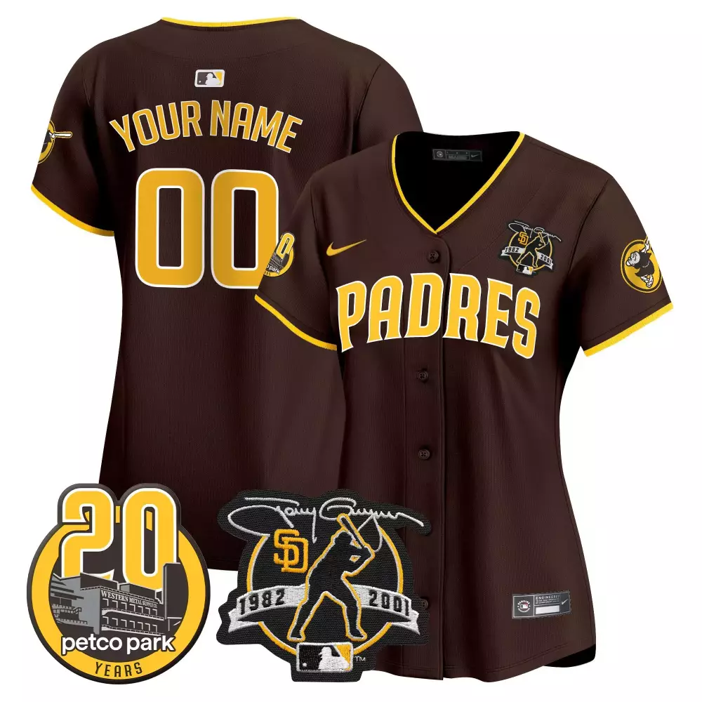 Tony Gwynn 2024 San Diego Padres White Gold Women’s Jersey | For Peter Robinson Patch | Limited Edition Vapor Premier | For Men, Women & Youth;Tony Gwynn 2024 San Diego Padres White Gold Women’s Jersey | Tony Gwynn Robinson Patch | Limited Edition Vapor Premier | For Men, Women & Youth;Tony Gwynn 2024 World Tour Seoul Series Limited Edition Jersey | White Gold | Premier Fan Gear for Men, Women & Youth;Tony Gwynn 20th Anniversary Patch Jersey | Brown Vapor Premier | Limited Edition Fan Gear | For Men, Women & Youth;Tony Gwynn 20th Anniversary Patch Jersey | City Connect Women Brown Vapor Premier | Limited Edition Fan Gear | For Men, Women & Youth