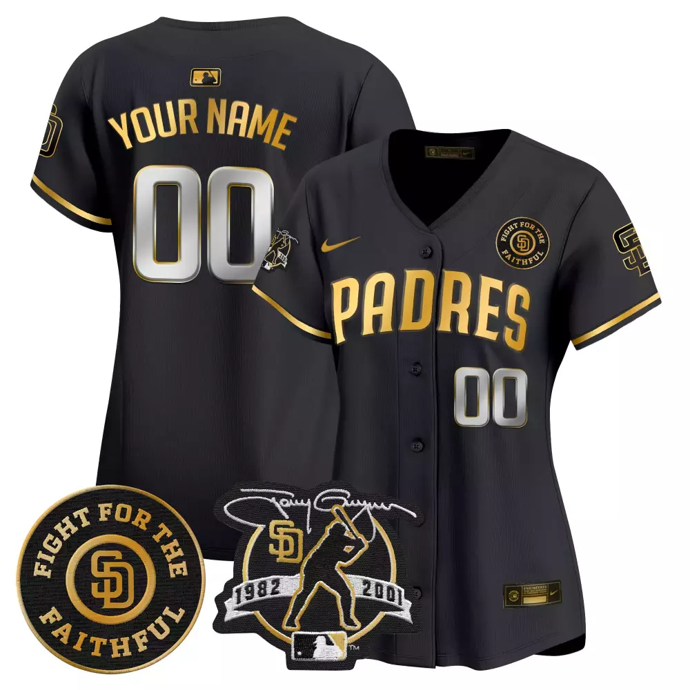 Tony Gwynn Faithful San Diego Padres Black Gold Vapor Premier Jersey | Limited Edition Stitched Fan Gear | For Men, Women & Youth;Tony Gwynn Faithful San Diego Padres Black Gold Vapor Premier Jersey | Limited Edition Stitched Fan Gear for Women | For Women & Youth;Tony Gwynn Faithful San Diego Padres Black Gold Vapor Premier Jersey | Limited Edition Stitched Fan Gear for Youth | For Youth;Tony Gwynn Gold 1982 Cooperstown Collection Mesh Batting Practice Jersey | Classic Fan Gear | For Men, Women & Youth;Tony Gwynn Gold Cooperstown Collection Mesh Batting Practice Jersey | Iconic Fan Gear | For Men, Women & Youth