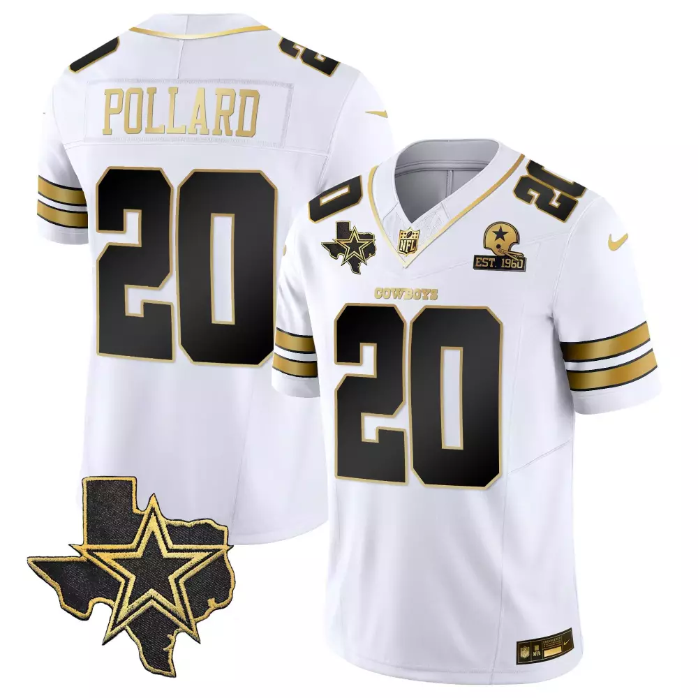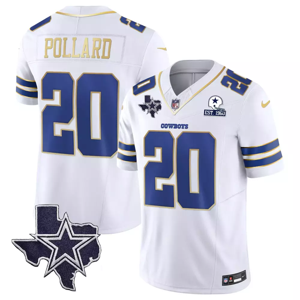 Tony Pollard Texas Patch Jersey | White Gold Vapor Style | Dallas Cowboys Fan Gear | For Men, Women & Youth