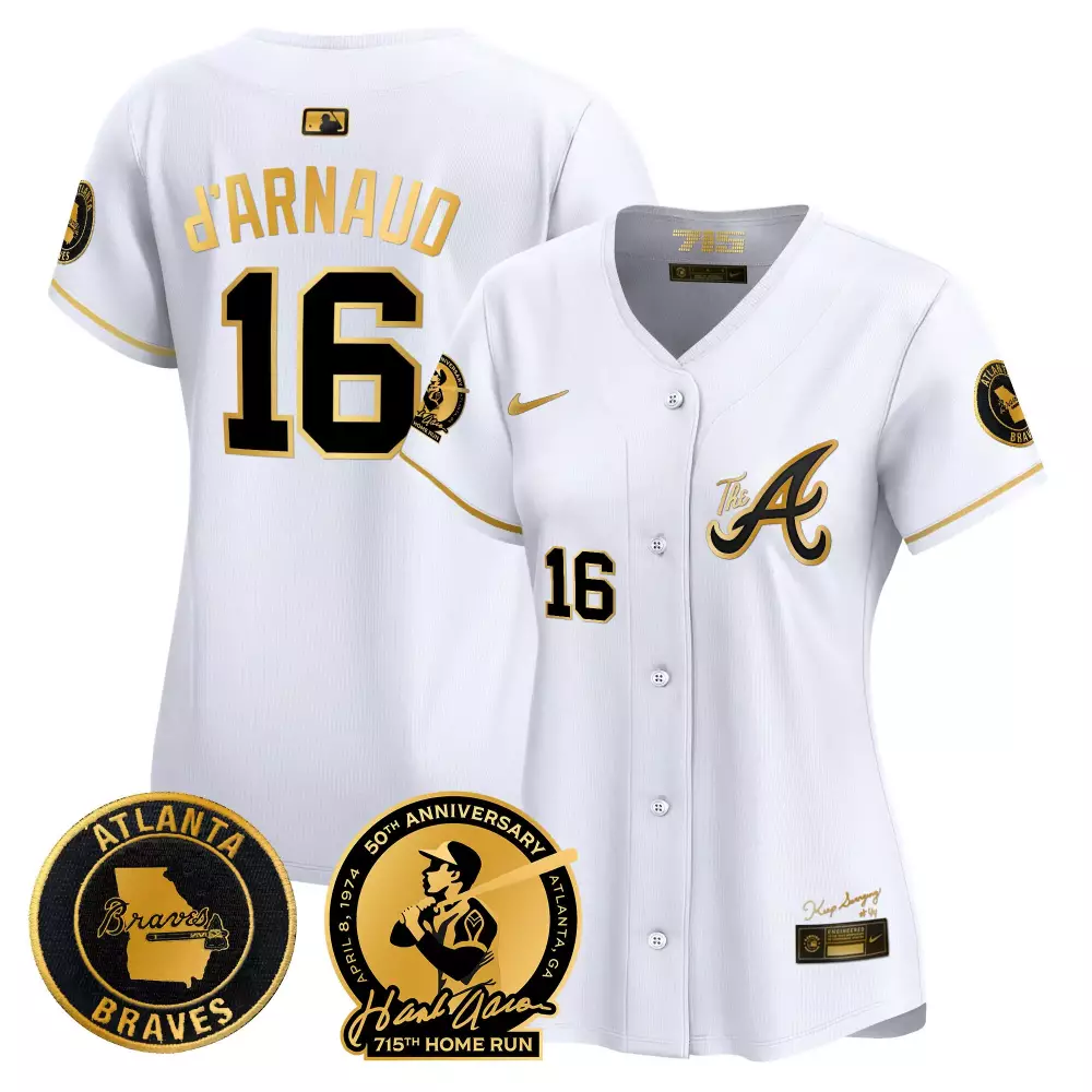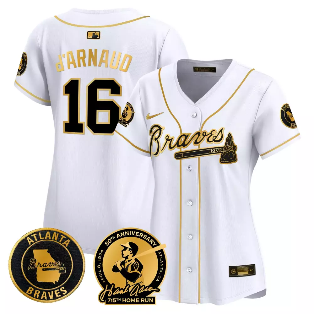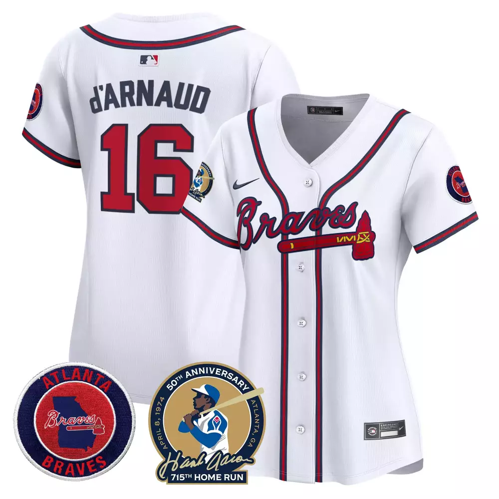 Travis d’Arnaud 16 Atlanta Braves Women’s White Stitched Jersey | 2021 World Series Champions | For Women & Youth;Travis d’Arnaud 16 Atlanta Braves Women’s White Stitched Jersey | 715th Home Run Name Patch | For Women & Youth;Travis d’Arnaud 16 Atlanta Braves Women’s White Stitched Jersey | 715th Home Run Patch | 2024 Fan Gear | For Women & Youth;Travis d’Arnaud 16 Atlanta Braves Women’s White Stitched Jersey | Name Patch 2023 | For Women & Youth;Travis d’Arnaud 16 Atlanta Braves Women’s White Vapor Premier Limited Jersey | Hank Aaron 715th Patch | For Women & Youth