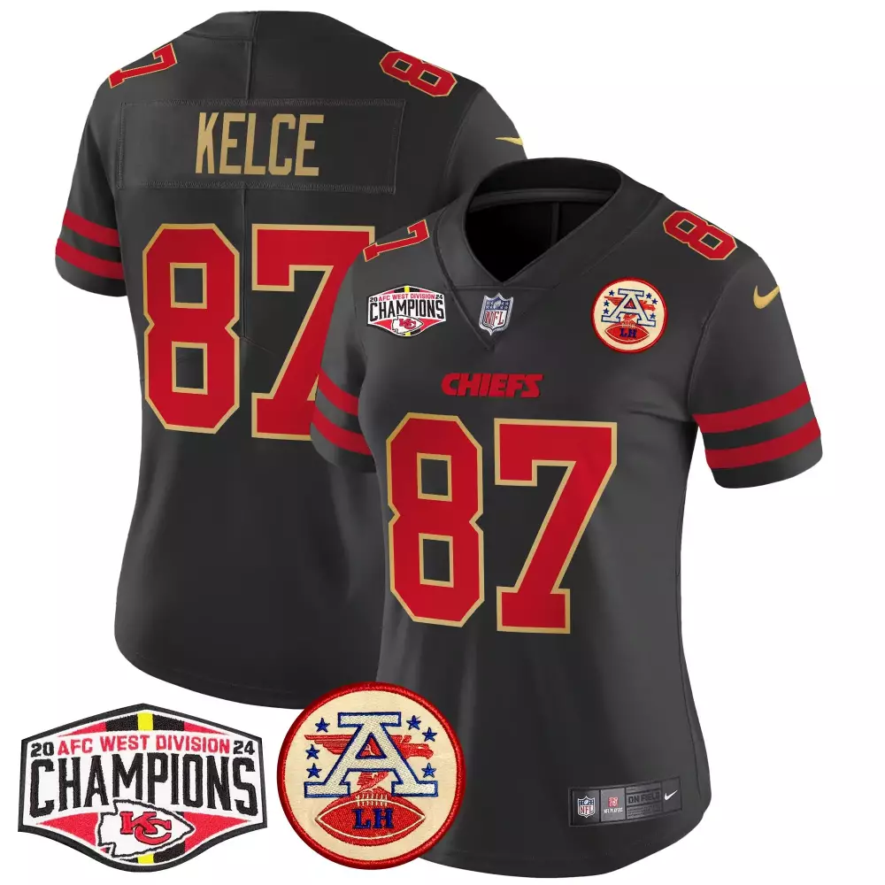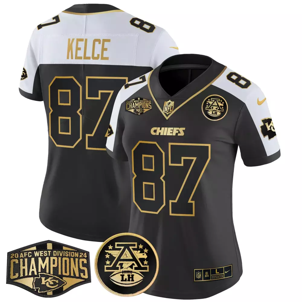 Travis Kelce Kansas City Chiefs 2024 AFC West Division Champions Gold Vapor Limited Jersey | Stitched Fan Gear | For Men, Women & Youth;Travis Kelce Kansas City Chiefs 2024 AFC West Division Champions Patch Gold Vapor Limited Jersey | For Women | Fan Gear;Travis Kelce Kansas City Chiefs 2024 AFC West Division Champions Patch Red Alternate Jersey | Stitched Fan Gear for Men, Women & Youth;Travis Kelce Kansas City Chiefs 2024 AFC West Division Champions Patch Vapor Jersey | Gold Trim | Limited Edition Fan Gear | For Men, Women & Youth;Travis Kelce Kansas City Chiefs 2024 AFC West Division Champions Patch Vapor Limited Jersey | Red | Celebrate the Victory | For Men, Women & Youth