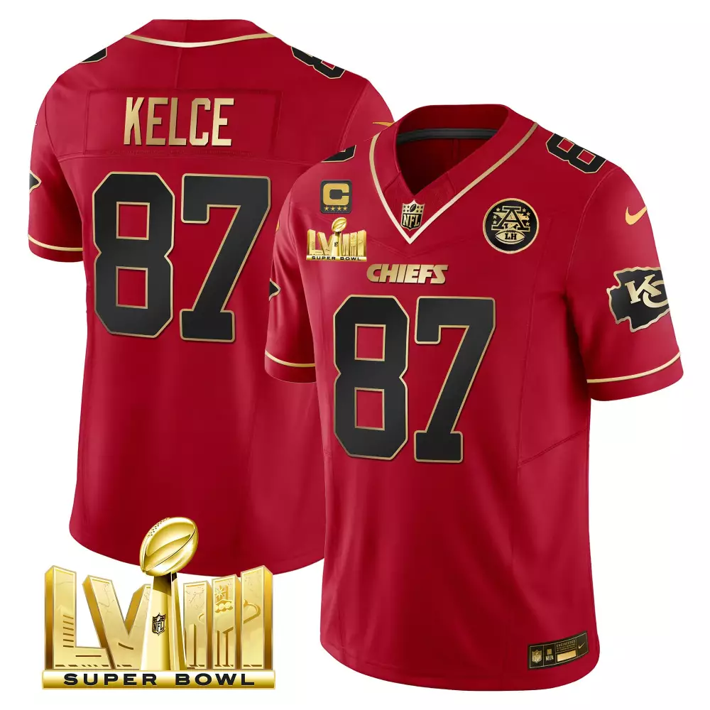 Travis Kelce Kansas City Chiefs Super Bowl LVIII Color Sleeves Jersey | Stitched Vapor Style | Limited Edition Fan Gear | For Men, Women & Youth;Travis Kelce Kansas City Chiefs Super Bowl LVIII Gold Patch Jersey | Stitched Vapor Style | Limited Edition Fan Gear | For Men, Women & Youth;Travis Kelce Kansas City Chiefs Super Bowl LVIII Gold Patch Vapor Elite Jersey | Stitched White Limited Edition Fan Gear | For Men, Women & Youth;Travis Kelce Kansas City Chiefs Super Bowl LVIII Gold Patch Vapor Jersey | All Stitched | Limited Edition Fan Gear | For Men, Women & Youth;Travis Kelce Kansas City Chiefs Super Bowl LVIII Gold Patch Vapor Jersey | Stitched | Fan Gear for Men, Women & Youth