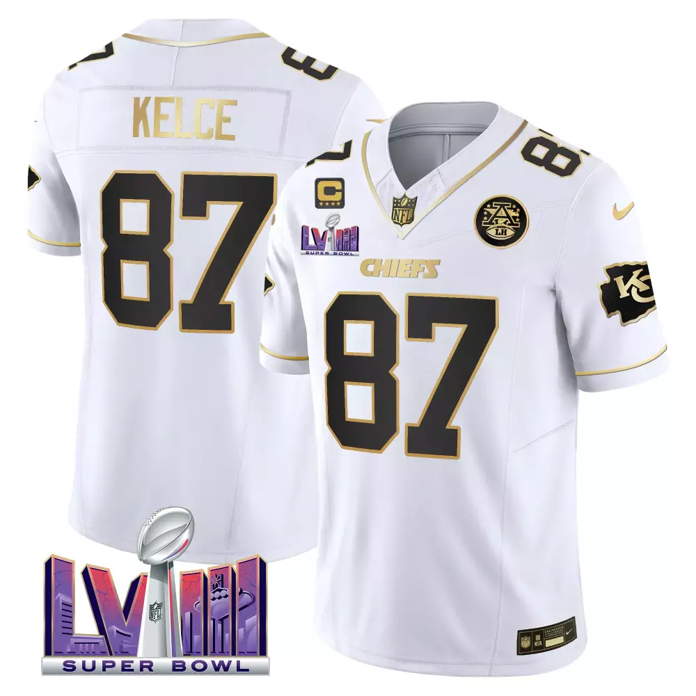 Travis Kelce Kansas City Chiefs Super Bowl LVIII Patch Vapor Jersey V4 | Stitched Fan Gear | For Men, Women & Youth;Travis Kelce Kansas City Chiefs Super Bowl LVIII Patch Vapor Jersey V4 | Stitched Fan Gear | For Men, Women & Youth;Travis Kelce Kansas City Chiefs Super Bowl LVIII Patch Vapor Jersey V4 | Stitched White & Gold | Limited Edition Fan Gear | For Men, Women & Youth;Travis Kelce Kansas City Chiefs Super Bowl LVIII Pattern Gold Vapor Jersey | Red & Gold | Replica Fan Gear | For Men, Women & Youth;Travis Kelce Kansas City Chiefs Super Bowl LVIII Pattern Gold Vapor Jersey | Stitched Edition | Fan Gear for Men, Women & Youth