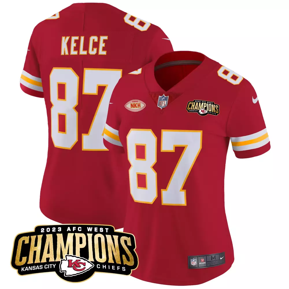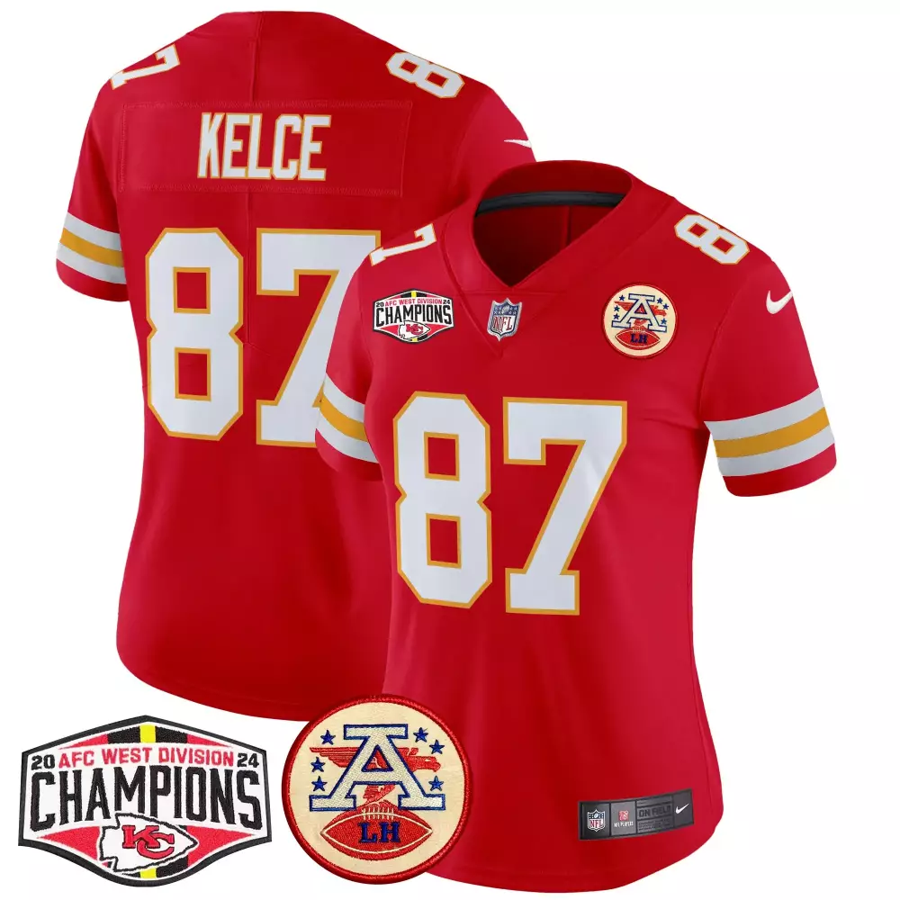 Travis Kelce Red Special Women’s Kansas City Chiefs Super Bowl LVIII Jersey | Stitched Patch Vapor | Limited Edition Fan Gear | For Men, Women & Youth;Travis Kelce Red Special Women’s Kansas City Chiefs Super Bowl LVIII Jersey | Stitched Patch Vapor | Limited Edition Fan Gear | For Men, Women & Youth;Travis Kelce Red Special Women’s Kansas City Chiefs Super Bowl LVIII Jersey | Stitched Patch Vapor | Replica Fan Gear | For Men, Women & Youth;Travis Kelce Red Women’s Kansas City Chiefs 2023 AFC West Champions Jersey | Stitched Vapor Limited | Fan Gear for Game Day | For Men, Women & Youth;Travis Kelce Red Women’s Kansas City Chiefs 2024 AFC West Division Champions Jersey | Stitched Vapor Limited | Fan Gear for Game Day | For Men, Women & Youth