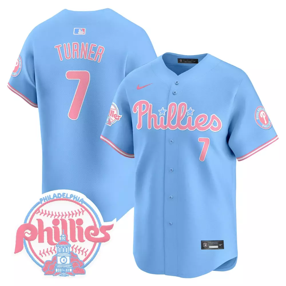 Trea Turner Light Blue Unisex Phillies Jersey | Bubblegum Pink Design | Vapor Premier Limited Edition | For Men, Women & Youth