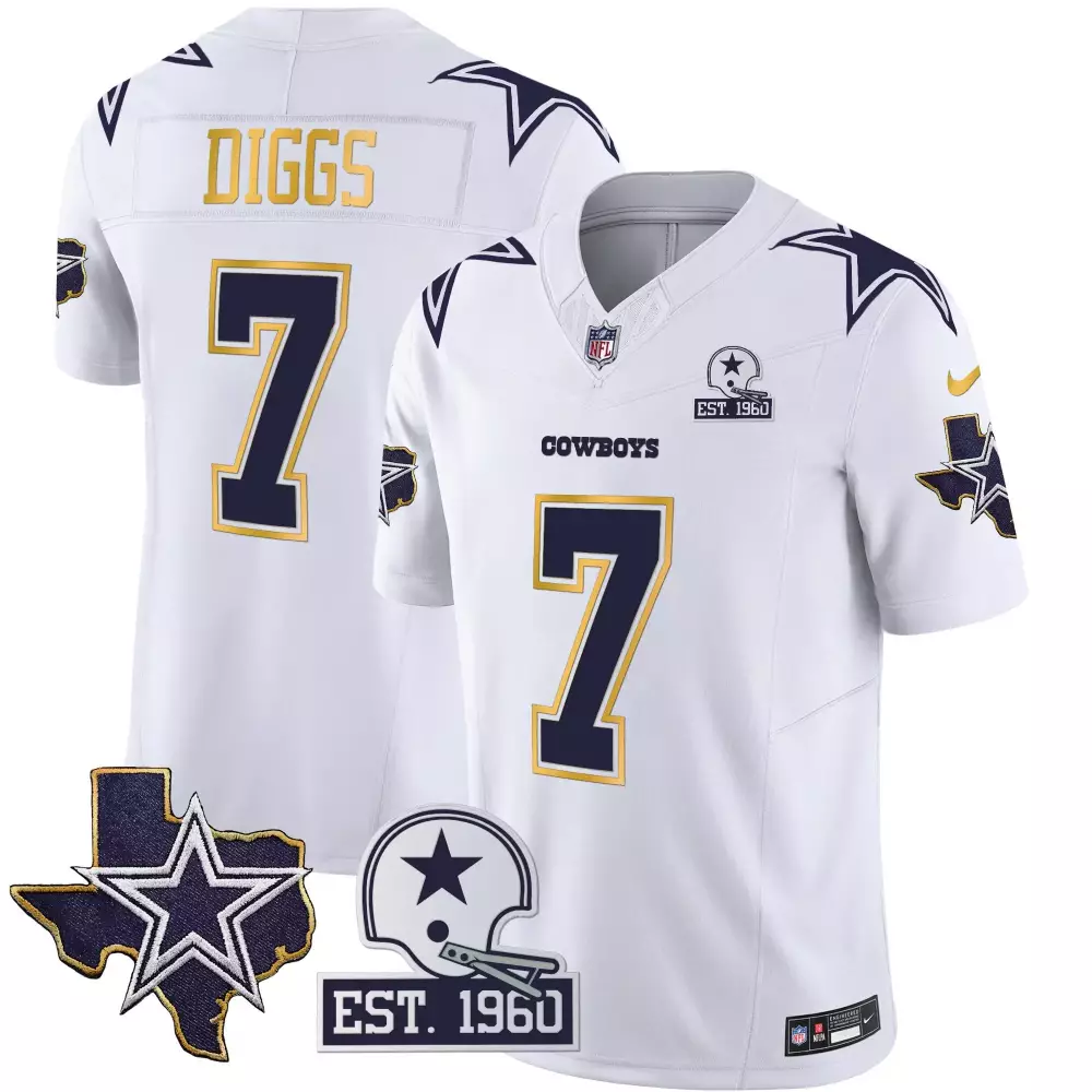 Trevon Diggs Men’s Dallas Cowboys Texas John Madden Patch Gold Trim Vapor Jersey | Stitched | Limited Edition Fan Gear | For Men, Women & Youth