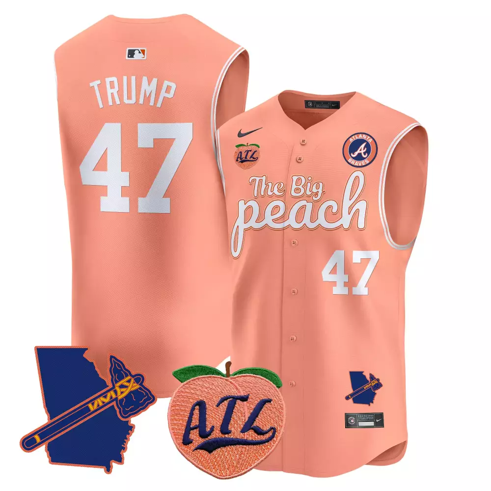 Trump 47 Atlanta Braves 2023 Stitched Vapor Jersey | Navy Orange Big Peach Design | Limited Edition Fan Gear for Men, Women & Youth;Trump 47 Atlanta Braves 2023 Stitched Vapor Jersey | Peach Colorway | Replica Fan Gear for Men, Women & Youth;Trump 47 Atlanta Braves 2023 Stitched Vapor Jersey | Peach Colorway with Patch | Limited Edition Fan Gear for Men, Women & Youth;Trump 47 Atlanta Braves 2023 Stitched Vapor Jersey | Peach Edition | Limited Edition Fan Gear for Men, Women & Youth;Trump 47 Atlanta Braves 2023 Stitched Vapor Jersey | Peach Edition | Replica Fan Gear for Men, Women & Youth