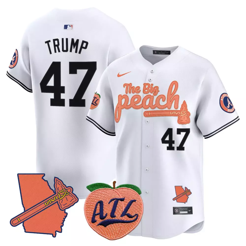 Trump 47 Atlanta Braves 2023 Stitched Vapor Jersey | The Big Peach Edition | Replica Fan Gear for Men, Women & Youth;Trump 47 Atlanta Braves 2023 Stitched Vapor Jersey | The Big Peach Edition | Replica Fan Gear for Men, Women & Youth;Trump 47 Atlanta Braves 2023 Stitched Vapor Jersey | White Orange Big Peach Edition | Limited Edition Fan Gear for Men, Women & Youth;Trump 47 Atlanta Braves 2023 Stitched Vapor Jersey | White Orange Big Peach Patch | Replica Fan Gear for Men, Women & Youth;Trump 47 Atlanta Braves 2023 Stitched Vapor Jersey | White Outkast Edition | Limited Edition Fan Gear for Men, Women & Youth