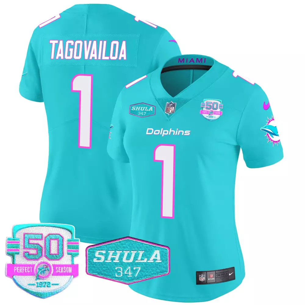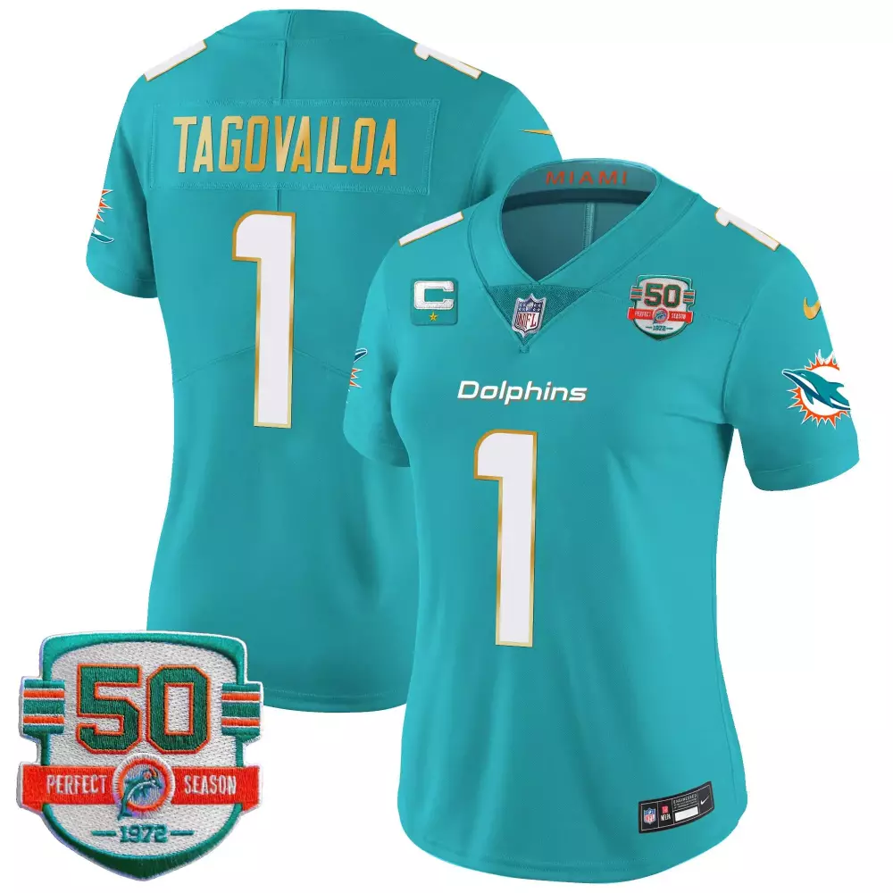 Tua Tagovailoa Aqua Men’s Vapor Limited Jersey | Miami Dolphins Stitched Fan Gear | For Men, Women & Youth;Tua Tagovailoa Aqua Women’s Gold Trim Jersey | Miami Dolphins Vapor Limited | Stitched Fan Gear | For Men, Women & Youth;Tua Tagovailoa Aqua Women’s Jersey | Miami Dolphins 50th Perfect Season Patch | Stitched Fan Gear | For Men, Women & Youth;Tua Tagovailoa Aqua Women’s Miami Dolphins Miami Vice Vapor Limited Jersey | All Stitched | Fan Gear for Game Day | For Men, Women & Youth;Tua Tagovailoa Aqua Women’s Miami Dolphins Miami Vice Vapor Limited Jersey V3 | All Stitched | Perfect Gift Idea for Fans | For Men, Women & Youth