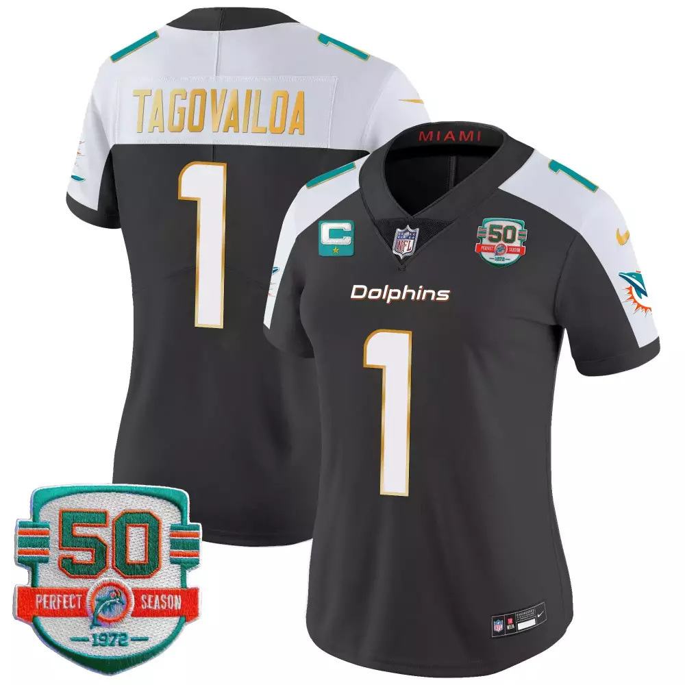 Tua Tagovailoa Miami Dolphins Black Alternate Vapor Limited Jersey | Stitched Fan Gear for Men, Women & Youth;Tua Tagovailoa Miami Dolphins Black Alternate Vapor Limited Jersey | Stitched Fan Gear for Men, Women & Youth;Tua Tagovailoa Miami Dolphins Black Alternate Women’s Vapor Jersey | 50th Perfect Season Patch Stitched Fan Gear for Women & Youth;Tua Tagovailoa Miami Dolphins Black Alternate Women’s Vapor Jersey | Shula 347 Patch Stitched Fan Gear for Women & Youth;Tua Tagovailoa Miami Dolphins Black Alternate Women’s Vapor Limited Jersey | Gold Trim Stitched Fan Gear for Women & Youth