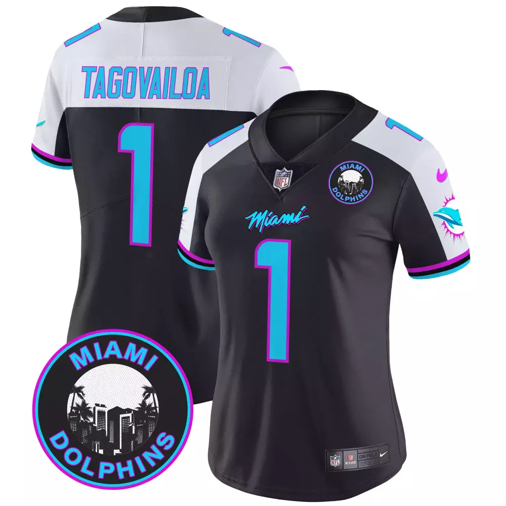 Tua Tagovailoa Miami Dolphins Black Alternate Women’s Vapor Limited Jersey | Miami Vice Stitched Fan Gear for Women & Youth