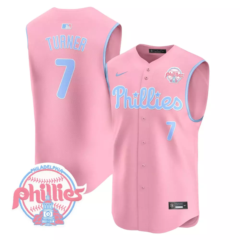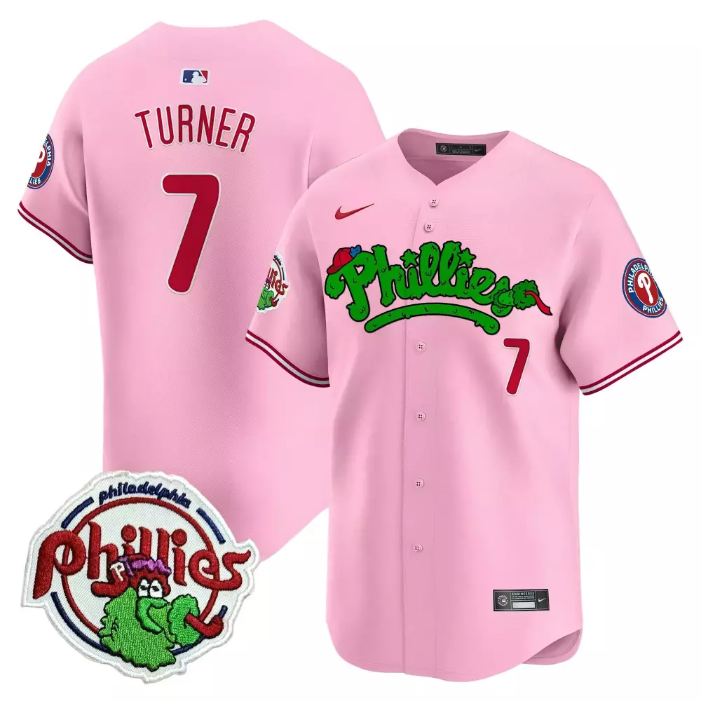 Turner 7 Philadelphia Phillies 2023 Stitched Vapor Jersey | Pink | Replica Fan Gear | For Men, Women & Youth