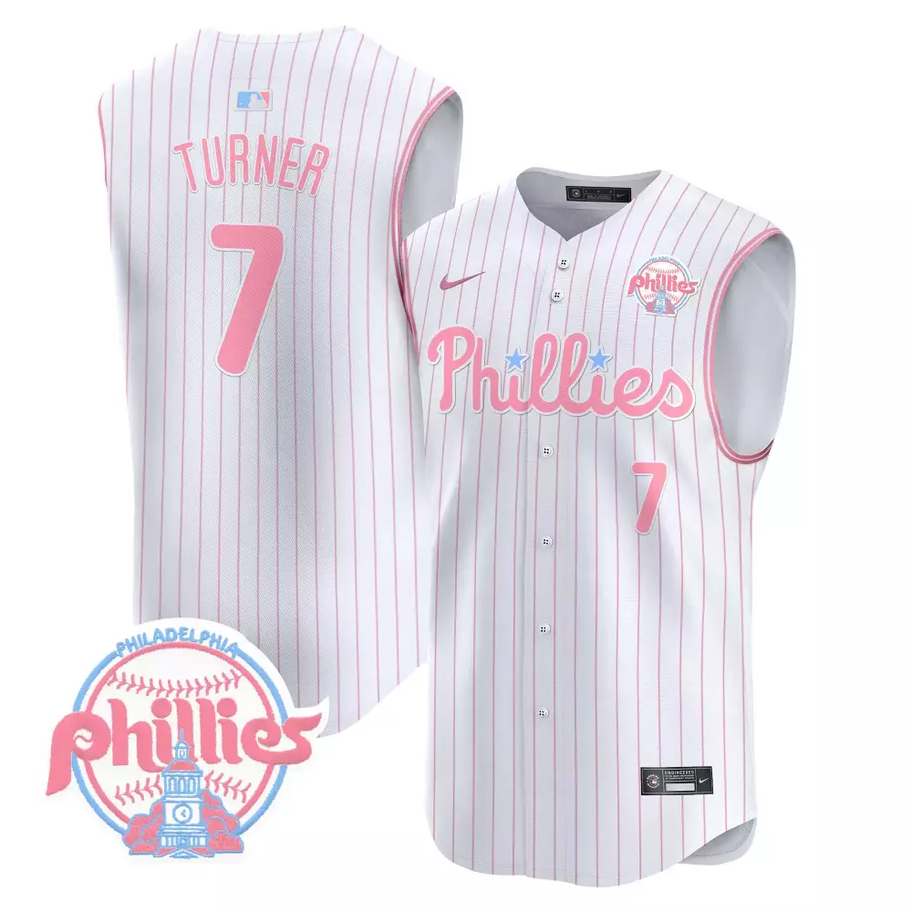 Turner 7 Philadelphia Phillies 2023 Stitched Vapor Jersey | Red White Blue NL Patch | Limited Edition Fan Gear | For Men, Women & Youth;Turner 7 Philadelphia Phillies 2023 Stitched Vapor Jersey | Red White Blue NL Patch | Limited Edition Fan Gear | For Men, Women & Youth;Turner 7 Philadelphia Phillies 2023 Stitched Vapor Jersey | White Green Design | Limited Edition Fan Gear for Game Day | For Men, Women & Youth;Turner 7 Philadelphia Phillies 2023 Stitched Vapor Jersey | White Phanatic Patch | Limited Edition Fan Gear | For Men, Women & Youth;Turner 7 Philadelphia Phillies 2023 Stitched Vapor Jersey | White Pink Edition | Limited Edition Fan Gear | For Men, Women & Youth