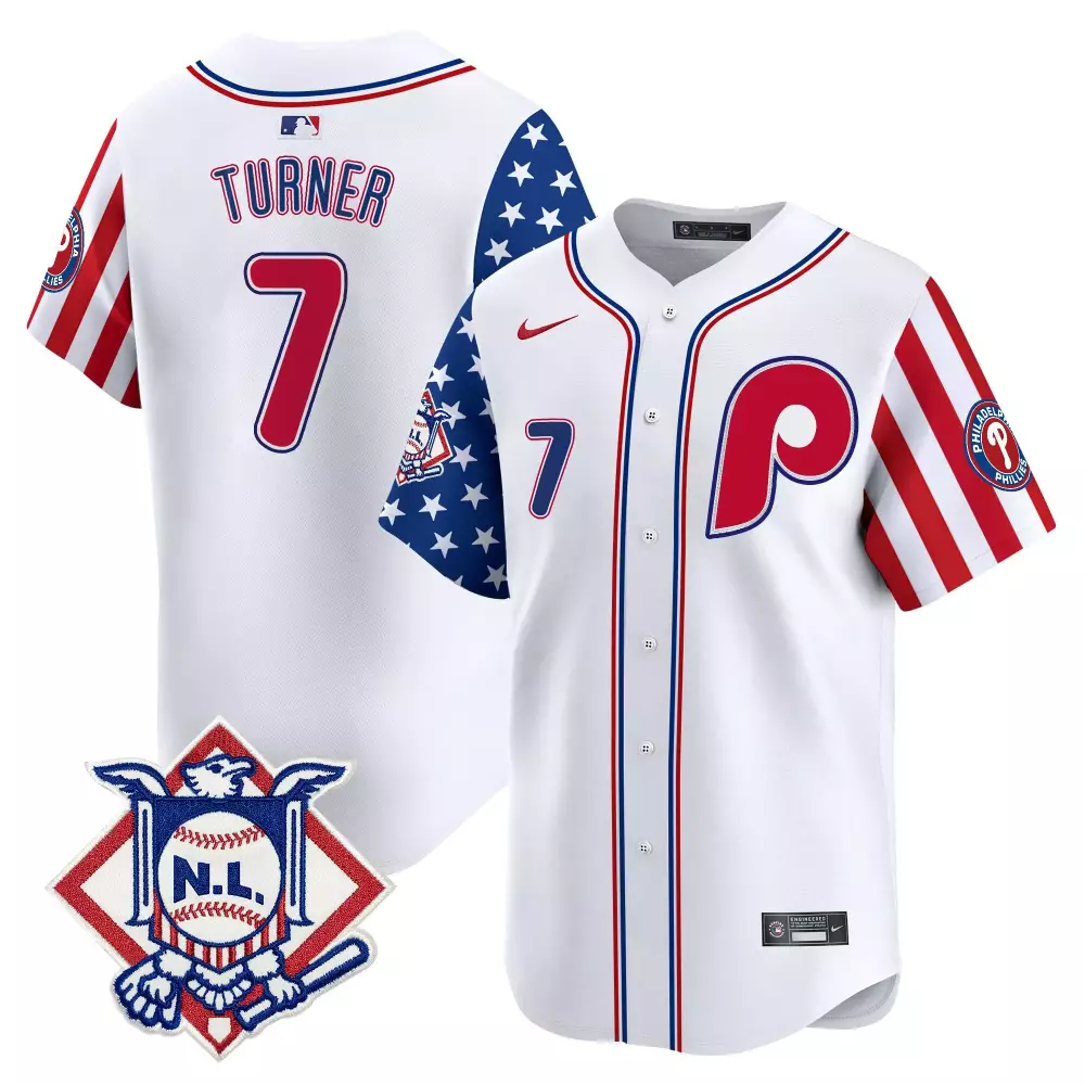 Turner 7 Philadelphia Phillies 2023 Stitched Vapor Jersey | White Pink Edition | Limited Edition Fan Gear | For Men, Women & Youth;Turner 7 Philadelphia Phillies 2023 Stitched Vapor Jersey | White Red Blue Edition | Limited Edition Fan Gear | For Men, Women & Youth;Turner 7 Philadelphia Phillies 2023 Stitched Vapor Jersey | White Red Blue NL Patch | Replica Fan Gear | For Men, Women & Youth;Turner 7 Philadelphia Phillies 2023 Stitched Vapor Jersey | White Red Design | Replica Fan Gear | For Men, Women & Youth;Turner 7 Philadelphia Phillies 2023 Stitched Vapor Jersey | White Red Edition | Replica Fan Gear | For Men, Women & Youth