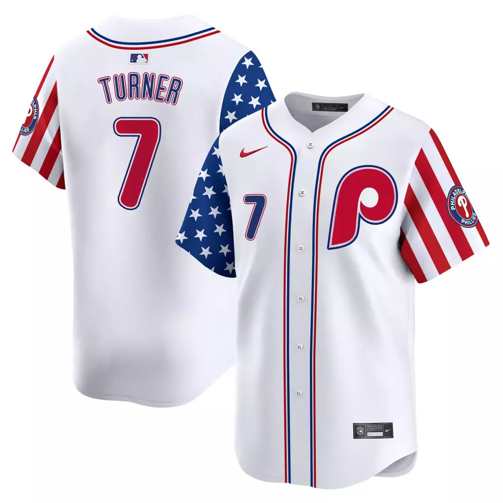 Turner 7 Philadelphia Phillies 2023 Stitched Vapor Jersey | White Red Stripes | Limited Edition Fan Gear for Game Day | For Men, Women & Youth;Turner 7 Philadelphia Phillies 2023 Stitched Vapor Jersey | White Red USA Patch | Limited Edition Fan Gear | For Men, Women & Youth;Turner 7 Philadelphia Phillies 2023 Stitched Vapor Jersey | White Special Edition | Limited Edition Fan Gear | For Men, Women & Youth;Turner 7 Philadelphia Phillies 2023 Stitched Vapor Jersey | White with Cole Hamels Patch | Limited Edition Fan Gear | For Men, Women & Youth;Turner 7 Philadelphia Phillies 2023 Stitched Vapor Jersey | White with Jackie Robinson Patch | Limited Edition Fan Gear | For Men, Women & Youth