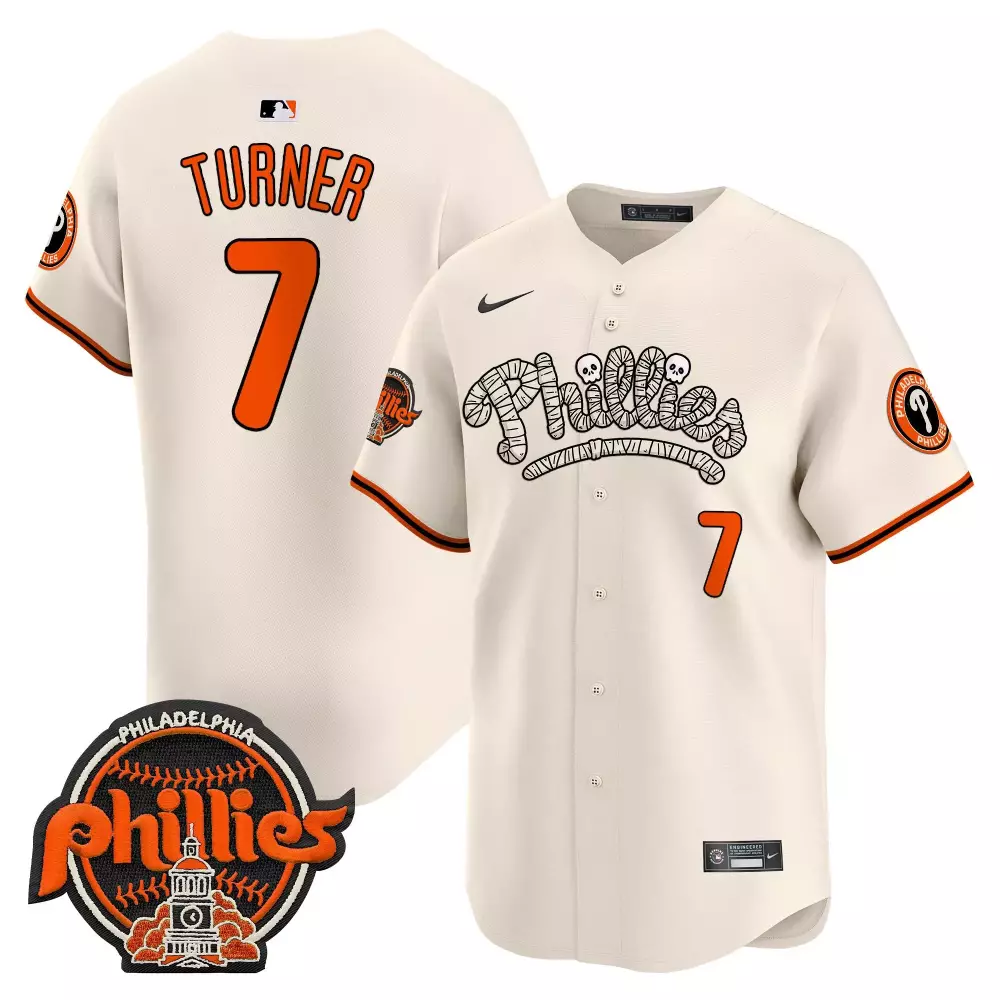 Turner 7 Philadelphia Phillies 2023 Vapor Jersey | Stitched Cream Colorway | Limited Edition Fan Gear | For Men, Women & Youth