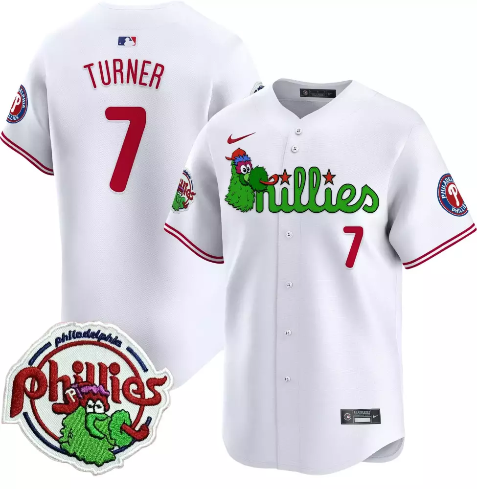 Turner Philadelphia Phillies 2023 White Green Design Patch Jersey | Stitched Vapor Fan Gear | Perfect Gift for Men, Women & Youth;Turner Philadelphia Phillies 2023 White Jersey with 24 Patch | Stitched Vapor Fan Gear | Ideal Gift for Men, Women & Youth;Turner Philadelphia Phillies 2023 White Meek Mill Edition Jersey | Stitched Vapor Fan Gear | Great Gift for Men, Women & Youth;Turner Philadelphia Phillies 2023 White NL Patch Jersey | Stitched Vapor Fan Gear | Perfect Gift for Men, Women & Youth;Turner Philadelphia Phillies 2023 White Pink Design Jersey | Stitched Vapor Fan Gear | Great Gift for Men, Women & Youth