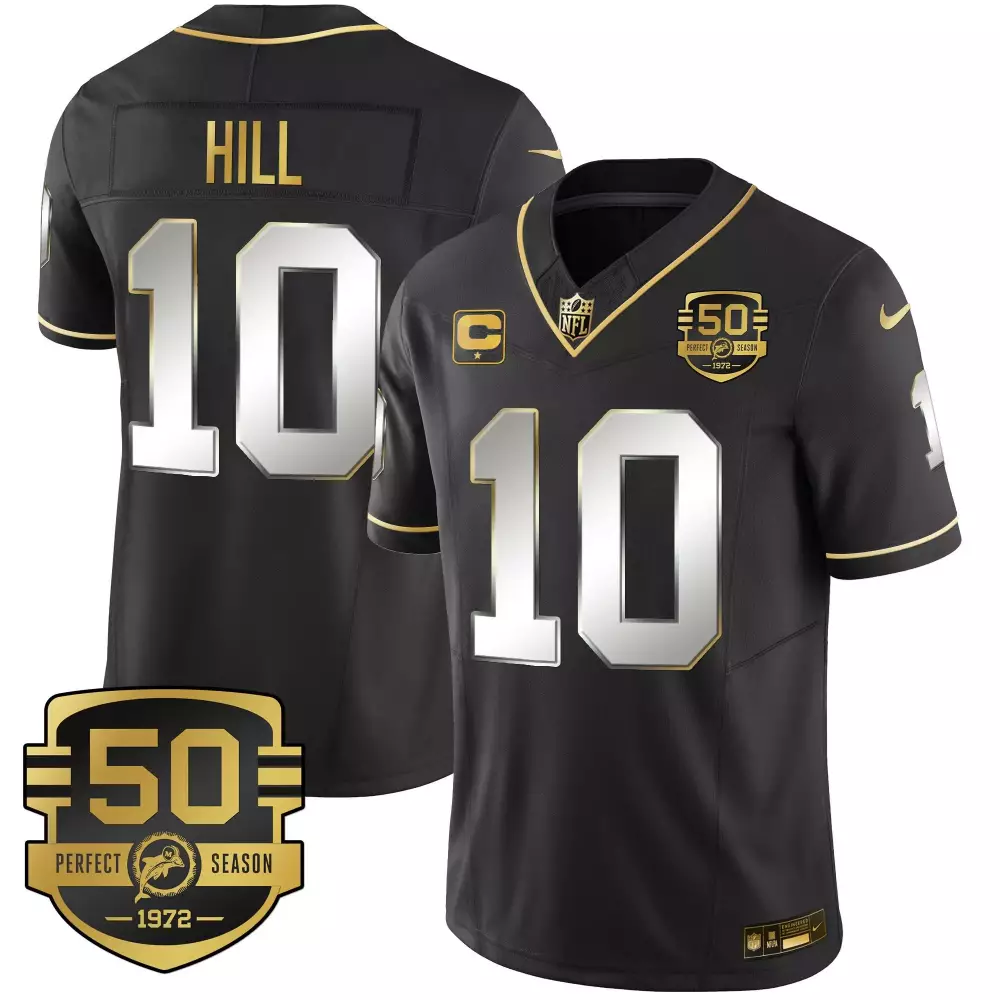 Tyreek Hill Black Jersey | Miami Dolphins Vapor Limited Edition V2 | All Stitched | Fan Gear for Men, Women & Youth;Tyreek Hill Black Limited Men’s Miami Dolphins Throwback Gold Vapor Jersey | Stitched Limited Edition Fan Gear for Men;Tyreek Hill Black Limited Men’s Miami Dolphins White Gold Jersey | Stitched Limited Edition Fan Gear for Men;Tyreek Hill Black Men’s Miami Dolphins 2024 Pro Bowl Patch Vapor Jersey | Stitched Limited Edition Fan Gear for Men;Tyreek Hill Black Men’s Miami Dolphins 50th Season Patch Vapor Jersey | Stitched Limited Edition Fan Gear for Men