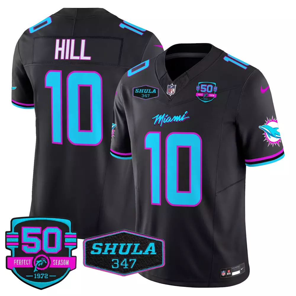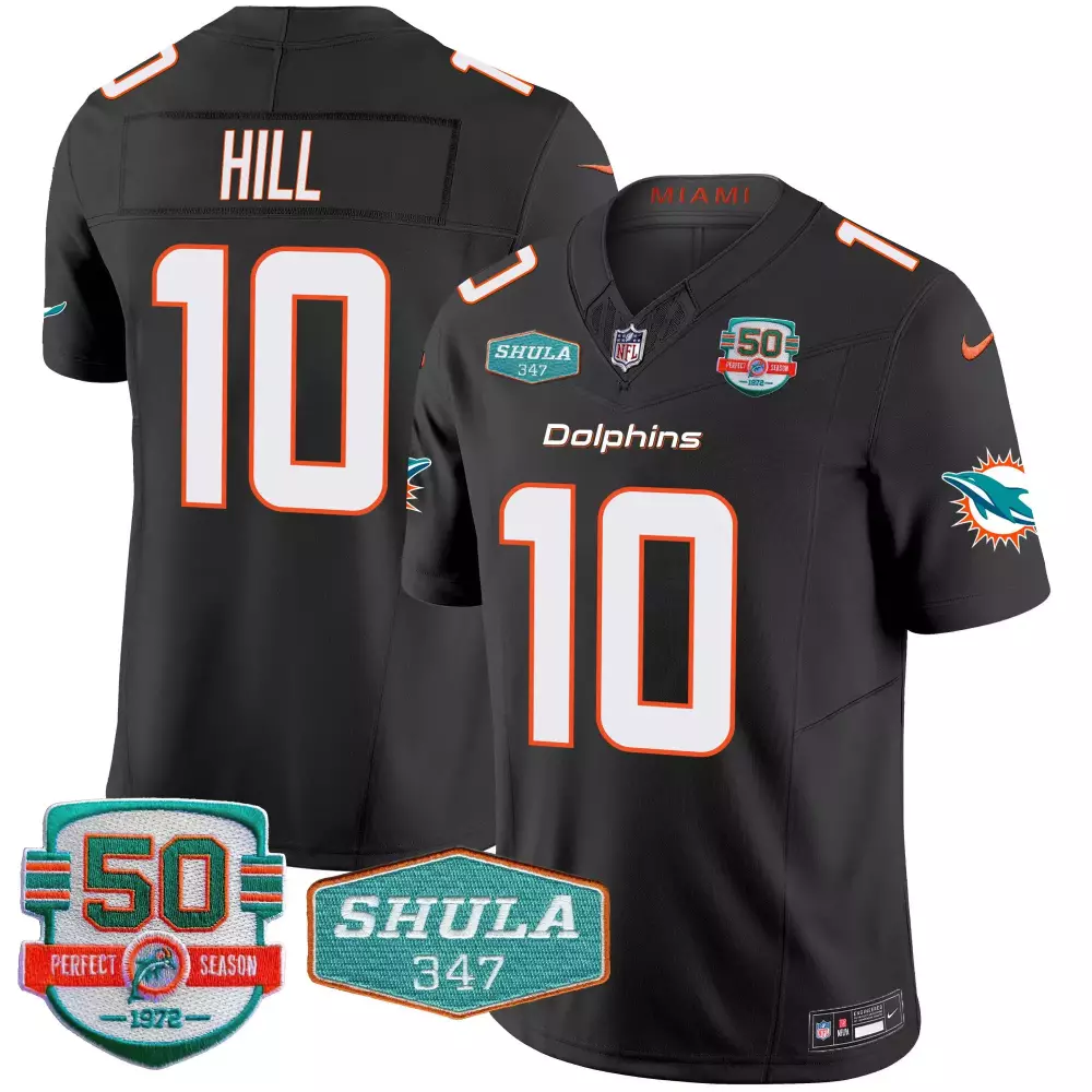 Tyreek Hill Black Men’s Miami Dolphins Miami Vice Vapor Limited Jersey V4 | Stitched Fan Gear for Men;Tyreek Hill Black Men’s Miami Dolphins Perfect Season Patch Vapor Jersey | Stitched Limited Edition Fan Gear for Men;Tyreek Hill Black Men’s Miami Dolphins Record Breaker Patch Vapor Limited Jersey | Stitched Fan Gear for Men;Tyreek Hill Black Men’s Miami Dolphins Shula 347 Patch Vapor Jersey | Stitched Fan Gear for Men;Tyreek Hill Black Men’s Miami Dolphins Throwback Shula 347 Patch Vapor Jersey | Stitched Fan Gear for Men
