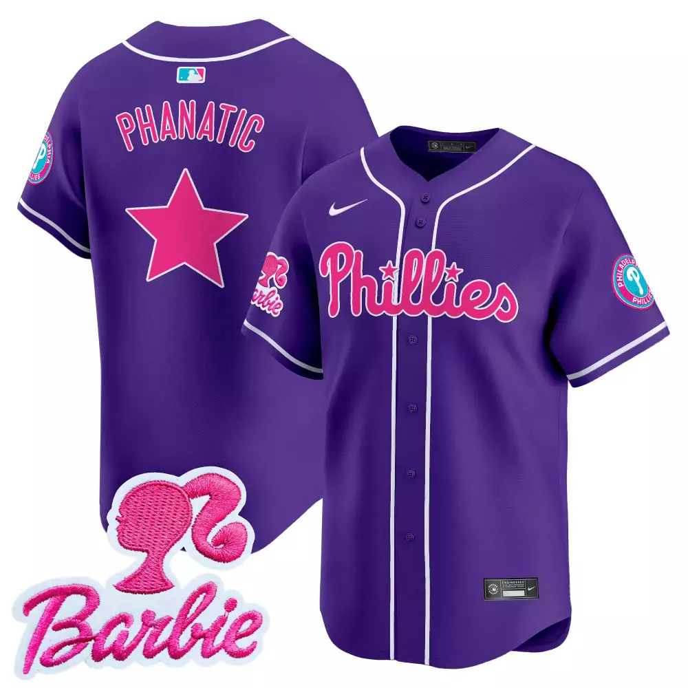 Unisex Phanatic Pinstripe Philadelphia Phillies Barbie Patch Vapor Premier Limited Jersey | All Stitched | Fan Gear for Men, Women & Youth;Unisex Phanatic Pinstripe Philadelphia Phillies Bubblegum Pink Vapor Premier Limited Jersey V2 | All Stitched | Fan Gear for Men, Women & Youth;Unisex Phanatic Purple Philadelphia Phillies Barbie Patch Vapor Premier Limited Jersey | All Stitched | Fan Gear for Men, Women & Youth;Unisex Phanatic Purple Philadelphia Phillies Phanatic Halloween Vapor Limited Jersey | Printed | Fan Gear for Men, Women & Youth;Unisex Phanatic Red Philadelphia Phillies Phanatic Halloween Vapor Limited Jersey | Printed | Fan Gear for Men, Women & Youth