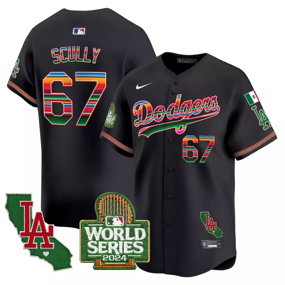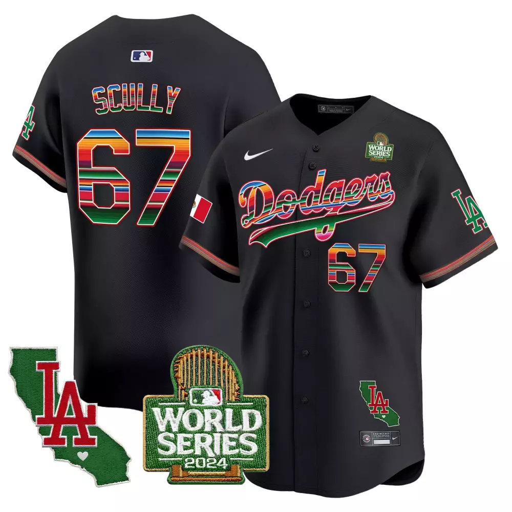 Vin Scully Black Dodgers Bryant Vin Patch Jersey | Cool Base Mamba | For Men, Women & Youth;Vin Scully Black Dodgers Mexico 2024 World Series Jersey | Vapor Premier Limited | For Men, Women & Youth;Vin Scully Black Dodgers Mexico 2024 World Series Jersey | Vapor Premier Limited V2 | For Men, Women & Youth;Vin Scully Black Dodgers Mexico Alternate Jersey | Cool Base Limited | For Men, Women & Youth;Vin Scully Black Dodgers Mexico Aztec Calendar Jersey | Vapor Premier Limited Printed | For Men, Women & Youth