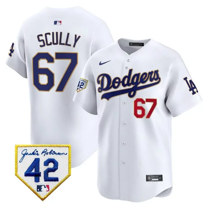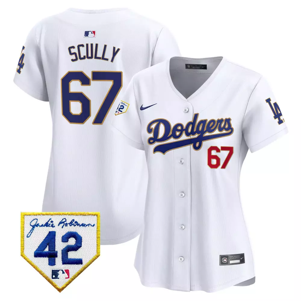 Vin Scully Dodgers 2024 Jackie Robinson Jersey | Limited Edition Stitched Fan Gear | For Men, Women & Youth;Vin Scully Dodgers 2024 Jackie Robinson Patch Vapor Premier Jersey | Limited Edition Stitched Fan Gear | For Women;Vin Scully Dodgers 2024 Jackie Robinson Patch Vapor Premier Limited Jersey | White | Fan Gear for Men, Women & Youth;Vin Scully Dodgers 2024 Kobe Patch Bubblegum Pink Vapor Premier Jersey | Limited Edition Stitched Fan Gear | For Men, Women & Youth;Vin Scully Dodgers 2024 Kobe Patch Gold Trim Vapor Premier Jersey | Limited Edition Stitched Fan Gear | For Women