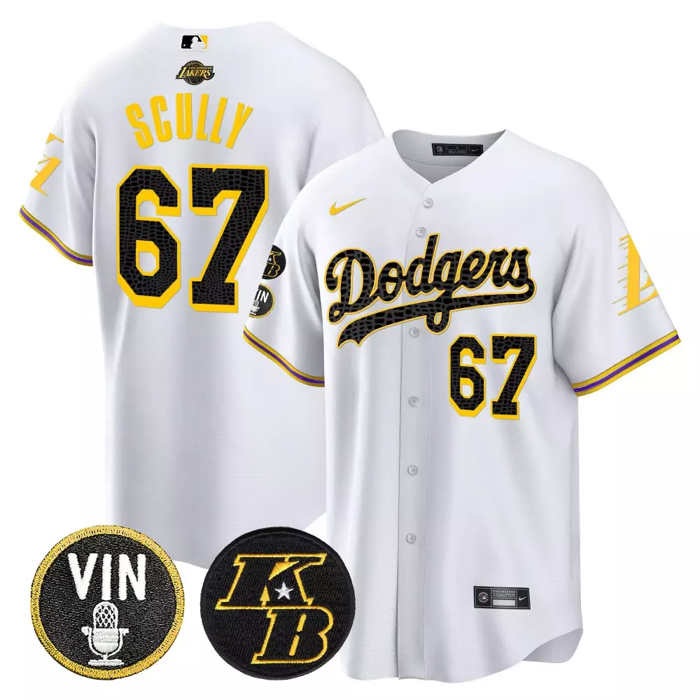 Vin Scully Dodgers Bryant Patch Cool Base Mamba Jersey | Purple Style | Essential Fan Gear for Game Day | For Men, Women & Youth;Vin Scully Dodgers Bryant Patch Cool Base Mamba Jersey | Royal Style | Essential Fan Gear | For Men, Women & Youth;Vin Scully Dodgers Bryant Vin Patch Cool Base Mamba Jersey | White | Fan Gear for Men, Women & Youth;Vin Scully Dodgers Bubblegum Pink Vapor Premier Jersey | Limited Edition Stitched Fan Gear | For Unisex;Vin Scully Dodgers Bubblegum Pink Vapor Premier Limited Jersey | White Unisex All Stitched Fan Gear | For Men, Women & Youth