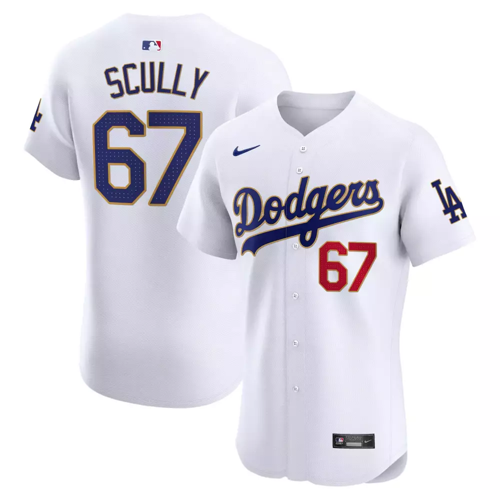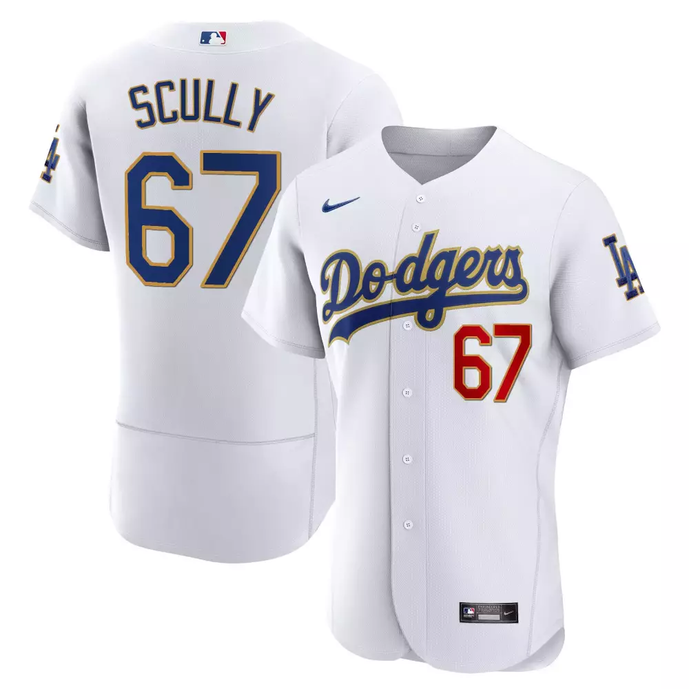 Vin Scully Dodgers Gold Trim Flex Base Jersey | Stitched Limited Edition | For Men, Women & Youth;Vin Scully Dodgers Gold Trim Flex Base Jersey | White Stitched | Limited Edition Fan Gear for Men, Women & Youth;Vin Scully Dodgers Gold Trim Premier Elite Jersey | Stitched Limited Edition | For Men, Women & Youth;Vin Scully Dodgers Gold Trim Premier Elite Jersey | White Stitched | Limited Edition Fan Gear for Men, Women & Youth;Vin Scully Dodgers Gold Trim Vapor Premier Limited Jersey | Alternate White Stitched | For Women | For Men, Women & Youth