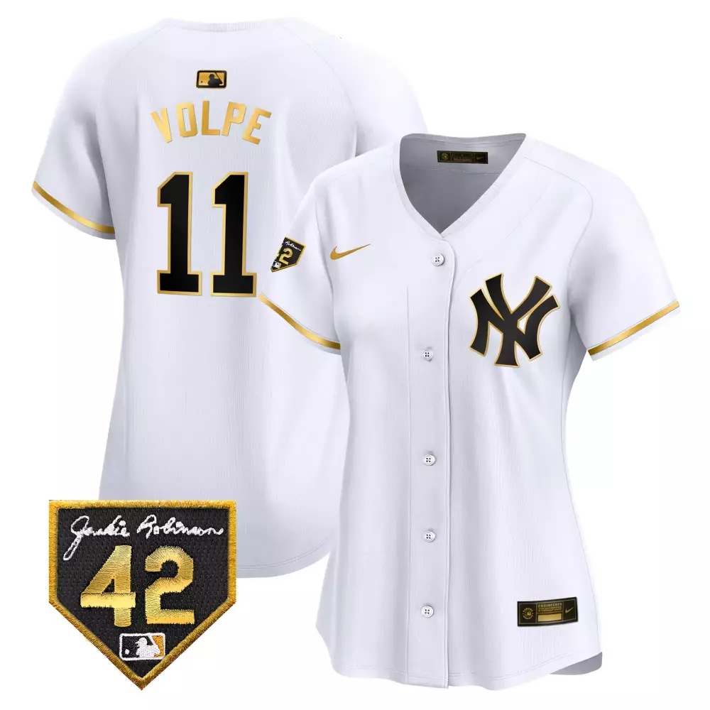 Volpe Yankees 1999 Throwback Jersey | White Gold Vapor Premier Limited Edition | Fan Gear for Men, Women & Youth;Volpe Yankees 2024 Jackie Robinson Patch Jersey | White Gold Vapor Premier Limited Edition | Fan Gear for Men, Women & Youth;Volpe Yankees 2024 Jackie Robinson Patch Jersey | White Gold Vapor Premier Limited Edition | Fan Gear for Men, Women & Youth;Volpe Yankees 2024 Spring Training Patch Jersey | White Gold Vapor Premier Limited Edition | Fan Gear for Men, Women & Youth;Volpe Yankees 2024 Spring Training Patch Jersey V2 | White Gold Vapor Premier Elite Edition | Fan Gear for Men, Women & Youth