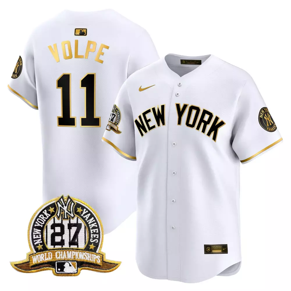 Volpe Yankees 27 Time Champions Patch Jersey | White Gold Vapor Premier Limited Edition | Fan Gear for Men, Women & Youth;Volpe Yankees 27 Time Champions Patch Jersey V2 | White Gold Vapor Premier Limited Edition | Fan Gear for Men, Women & Youth;Volpe Yankees Black Gold 2024 Bronx Graffiti Vapor Premier Jersey V5 | Limited Edition Fan Gear | For Men, Women & Youth;Volpe Yankees Black Gold 2024 Bronx Graffiti Vapor Premier Jersey V6 | Limited Edition Fan Gear | For Men, Women & Youth;Volpe Yankees Black Gold 2024 Derek Jeter Patch Vapor Premier Jersey | Limited Edition Fan Gear | For Men, Women & Youth