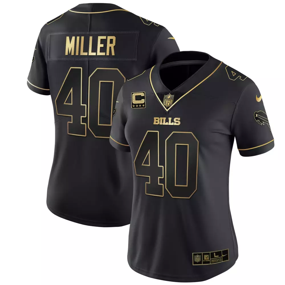 Von Miller Buffalo Bills White Gold Jersey | All Stitched Fan Gear | For Women