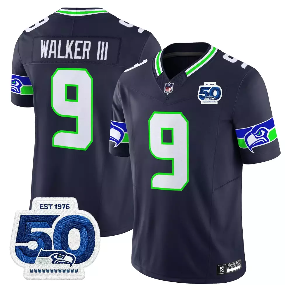 Walker III 9 Men’s Vapor Jersey | Seattle Seahawks 50th Anniversary Patch Blue Stitched 2023 | Limited Edition Fan Gear for Men, Women & Youth;Walker III 9 Men’s Vapor Limited Jersey | Navy Seattle Seahawks 1976 Patch | Limited Edition Fan Gear for Men, Women & Youth;Walker III 9 Men’s Vapor Limited Jersey | Seattle Seahawks Blue with 1976 Patch 2025 Season | Limited Edition Fan Gear for Men, Women & Youth;Walker III 9 Men’s Vapor Navy Jersey | 50th Anniversary Patch Seattle Seahawks 2023 | Limited Edition Fan Gear for Men, Women & Youth;Walker III 9 Seattle Seahawks 2021 Rain City Shadows Edition Stitched Jersey | Black for Women | For Men, Women & Youth